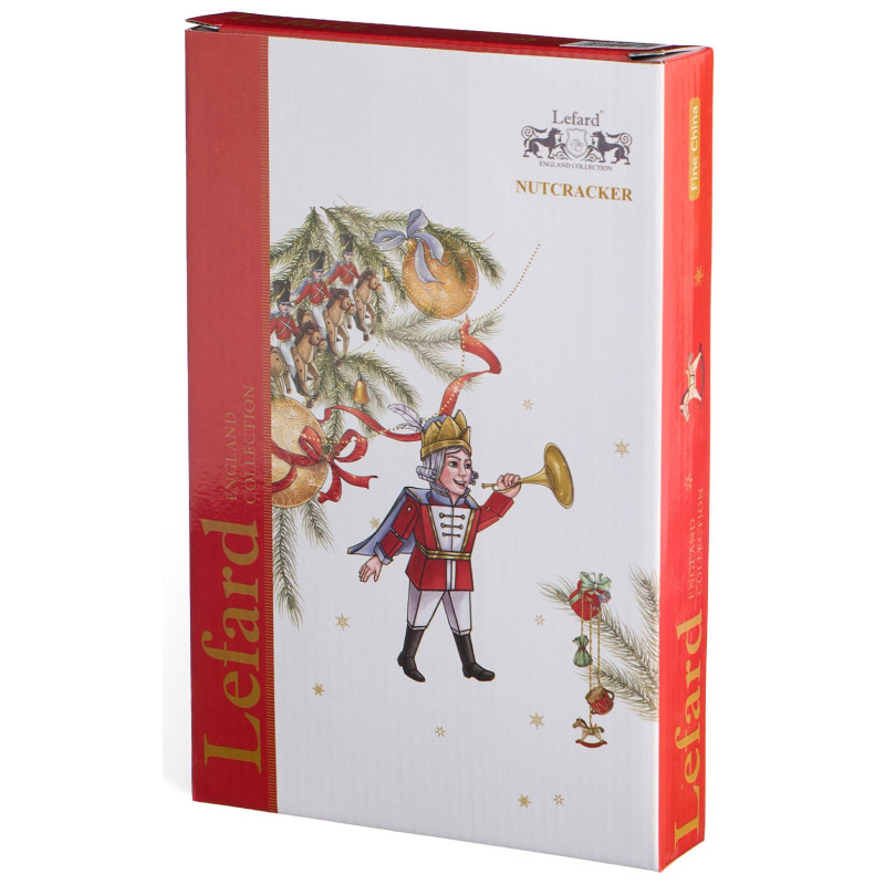 ТМ LEFARD эксклюзивная коллекция «Nutcracker» - Щелкунчик создана по мотивам одноименной истории, с которой знакомы все дети и взрослые. Волшебная история о новогоднем чуде идеально подходит для создания праздничного настроения. Широкий ассортимент тарелок, салатников, кружек, чайных пар поможет сервировать праздничный стол и создать сказочную атмосферу. Все изделия выполнены из качественного тонкого фарфора. Прямые современные формы, удобные объемы. Стильная, подарочная упаковка. Дарите сказку друзьям и близким людям! Можно использовать в СВЧ, не рекомендуется мыть в посудомоечных машинах во избежание повреждения золотой отводки (деколи) на изделиях.