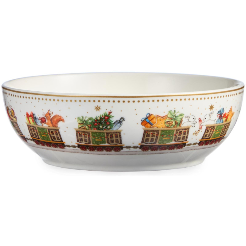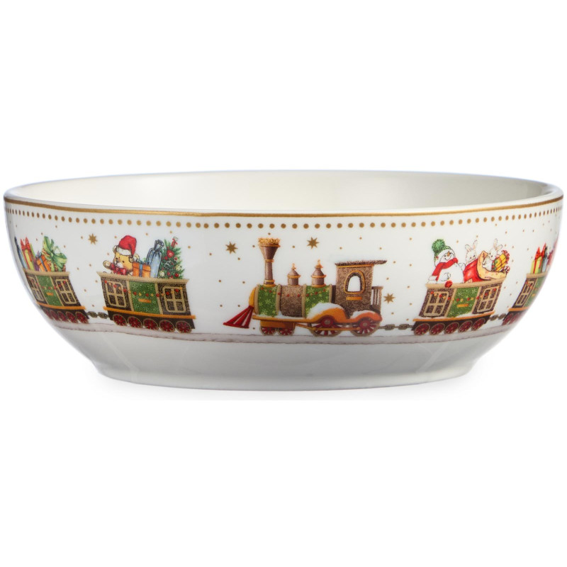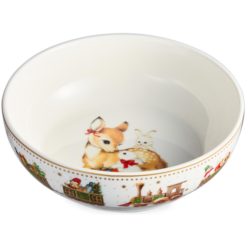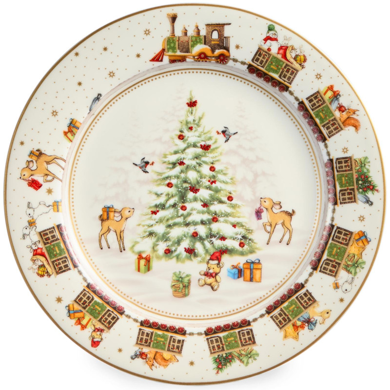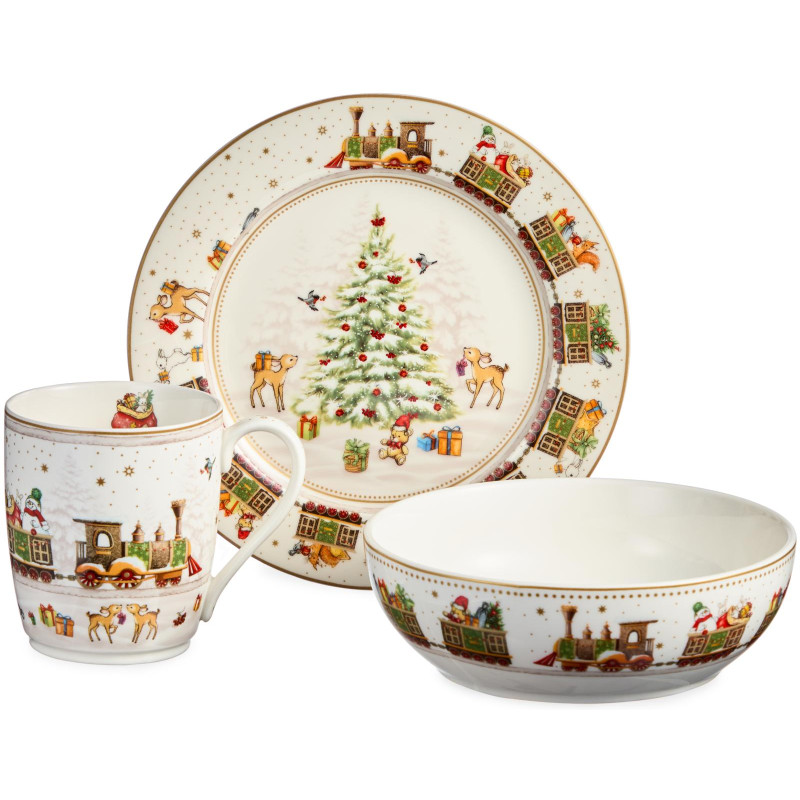 ТМ LEFARD New Year Collection для детей украсит праздничный новогодний стол и порадует Ваших детей в самые ожидаемые дни в году. С 1699 года указам Петра Первого Новый год празднуется в ночь на 1 января каждого года (по юлианскому календарю). Символом праздника стал дедушка с белой бородой, имя которого - Дед Мороз, и его помощница - девочка из снега по имени Снегурочка. Изделия с любимыми персонажами, лесными жителями и нарядной новогодней Елкой в веселом хороводе выполнены на тонкостенном высококачественном фарфоре. Посуда упакована в яркие коробки. Это прекрасный подарок. Продукция прошла сертификацию, безопасна для контакта с пищевыми продуктами. Можно использовать в СВЧ, не рекомендуется мыть в посудомоечных машинах во избежание повреждения золотой отводки (деколи) на изделиях.
