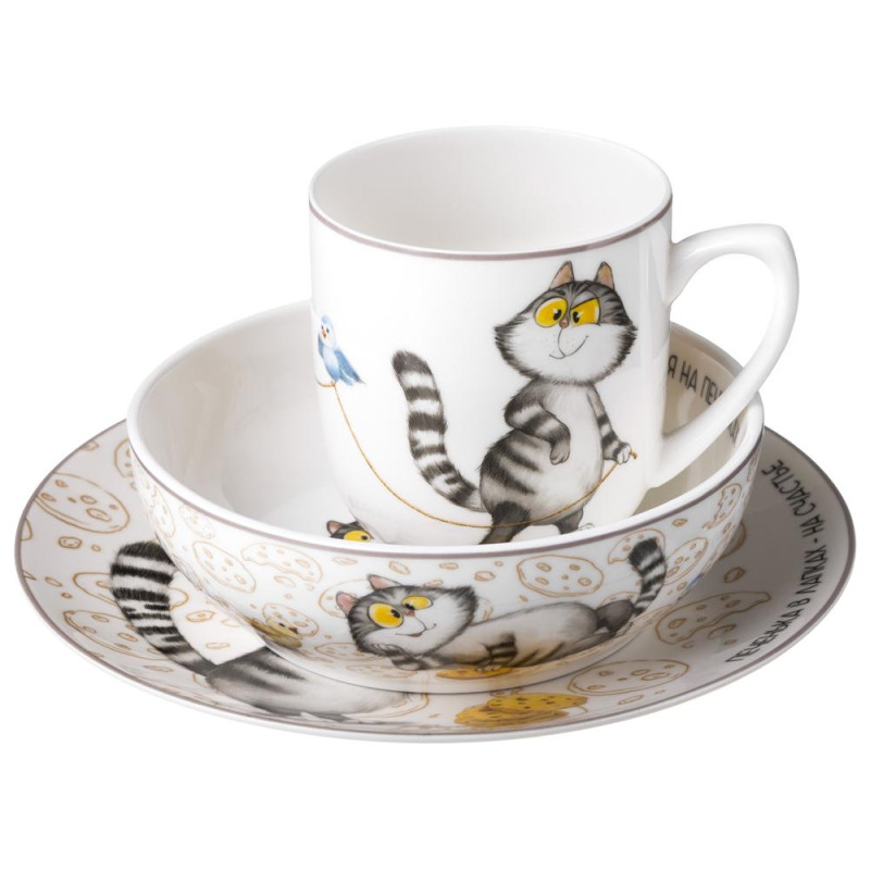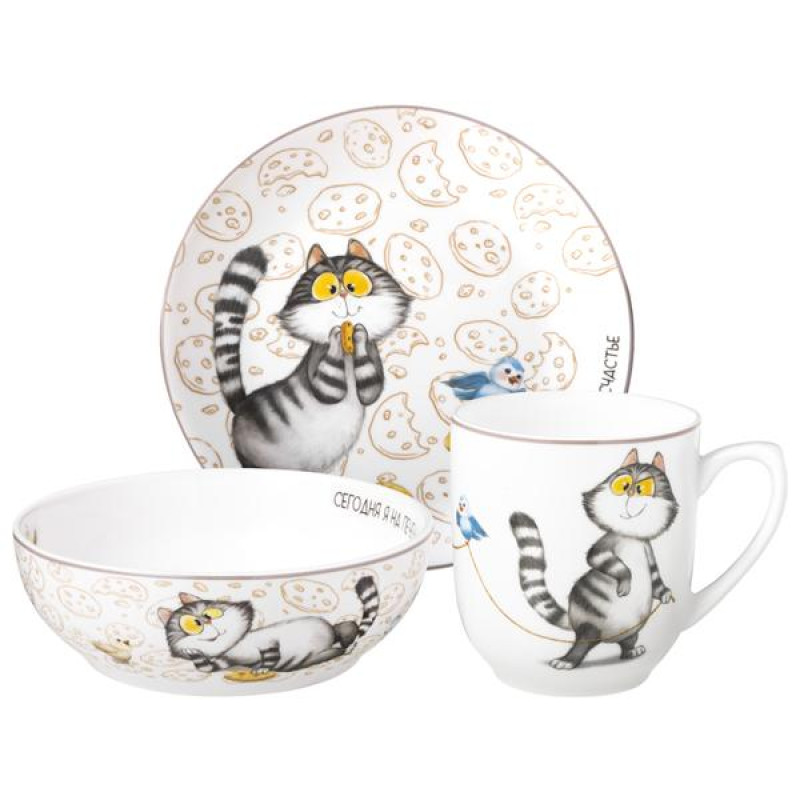 Набор посуды " СЧАСТЬЕ ЕСТЬ" 3 пр.: кружка 400 мл, тарелка 20, 5 см, салатник 15, 5*5 см 600 мл LEFARD 85-2091