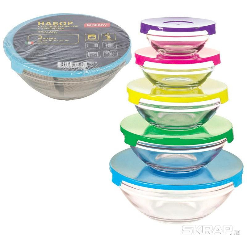 007177 Набор из 5-ти стекл мисок с крышками Mallony INSALATO