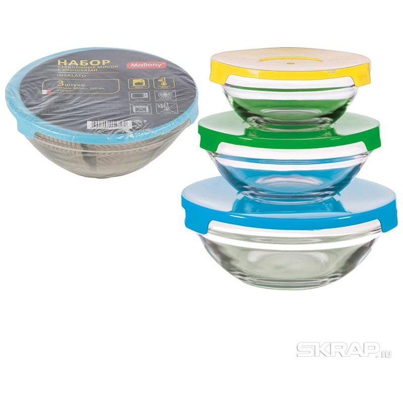 007178 Набор из 3-х стекл мисок с крышками Mallony INSALATO