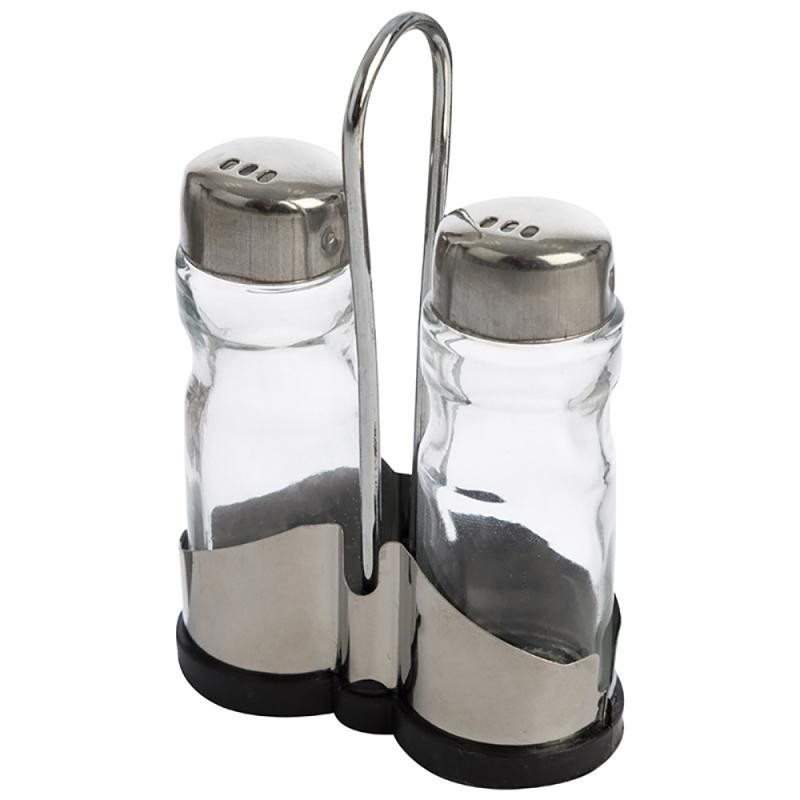 набор, солонка 40мл, перечница 40мл стекло, подставка сталь