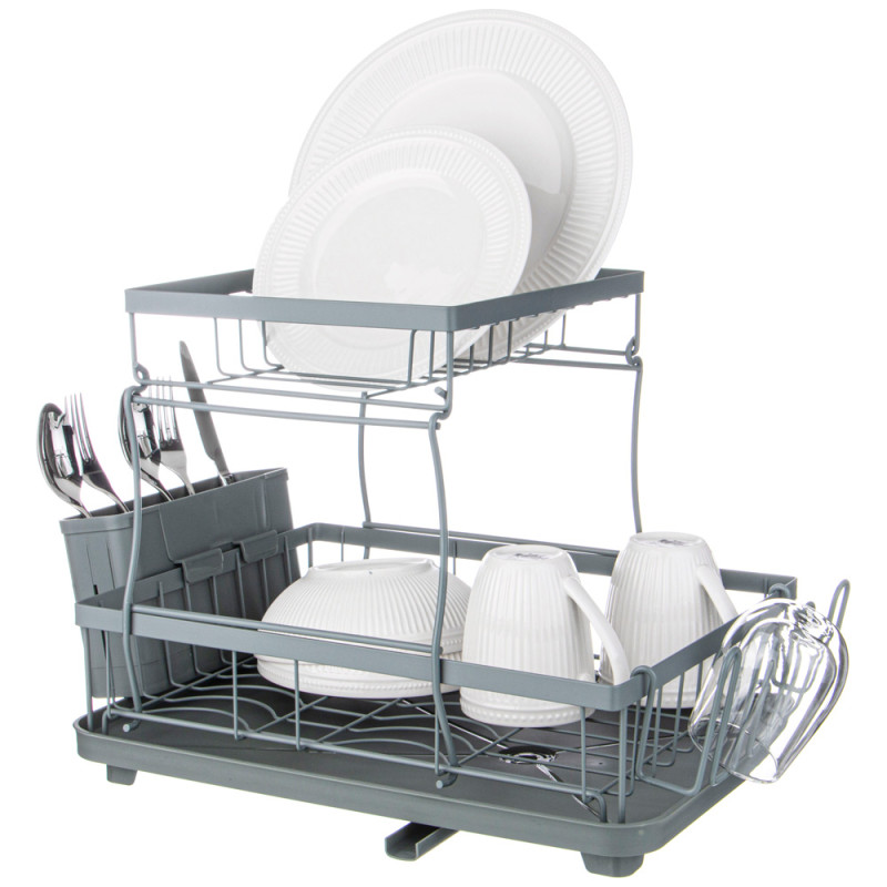 Сушилка для посуды имеет разборную конструкцию: вы можете сушить посуду друг над другом, а можете снять второй ярус и поставить его рядом.