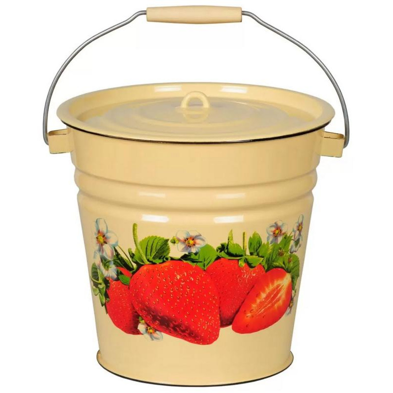 С1224.П Ведро 12л, эмалированное, с/крышкой декор палевое