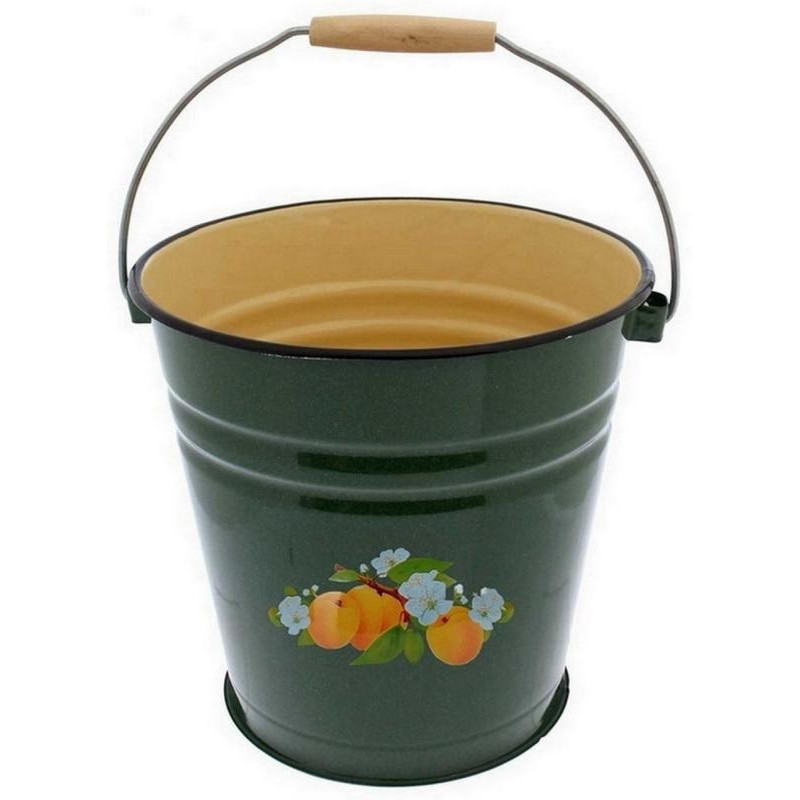 С1224.зП*76 Ведро эмал. 12л с крышкой Абрикос зелёный рябчик/палевое