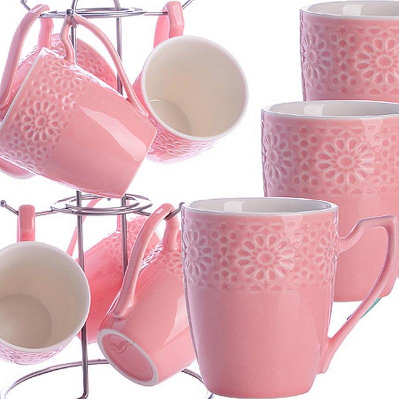 7х220мл, керамика, подставка металл, розовый