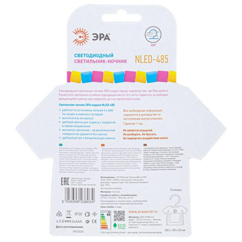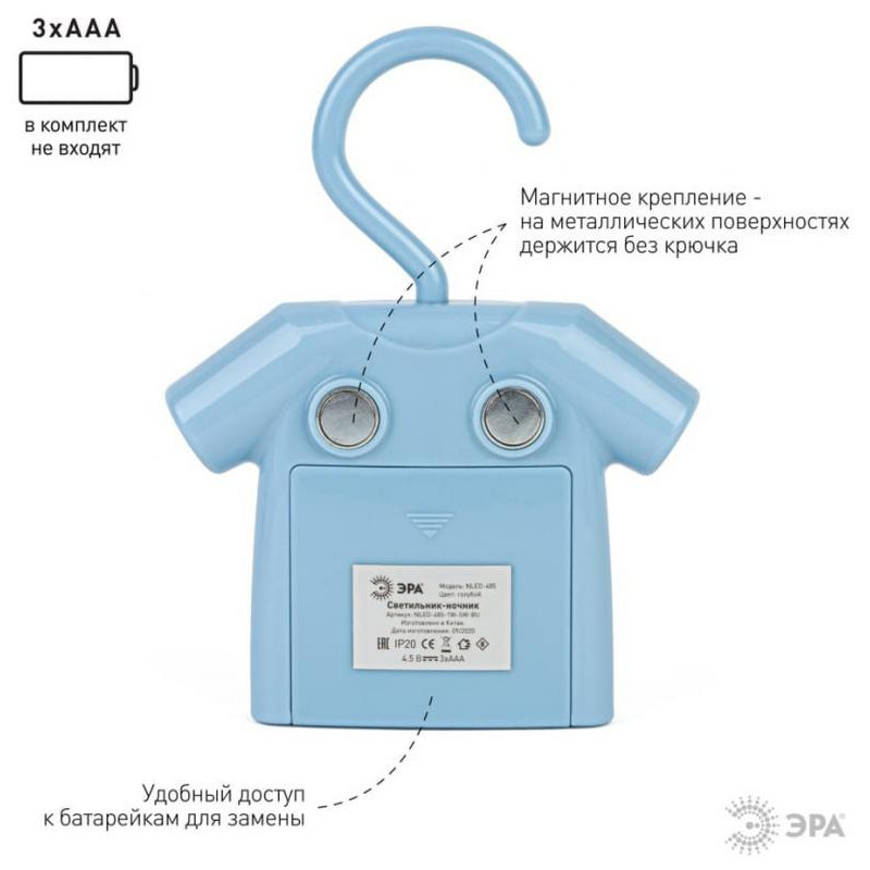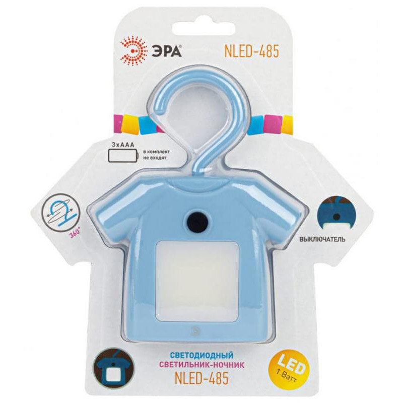 485 NLED-1W-SW-BU Ночник - светильник светодиодный на батарейках с выключателем голубой