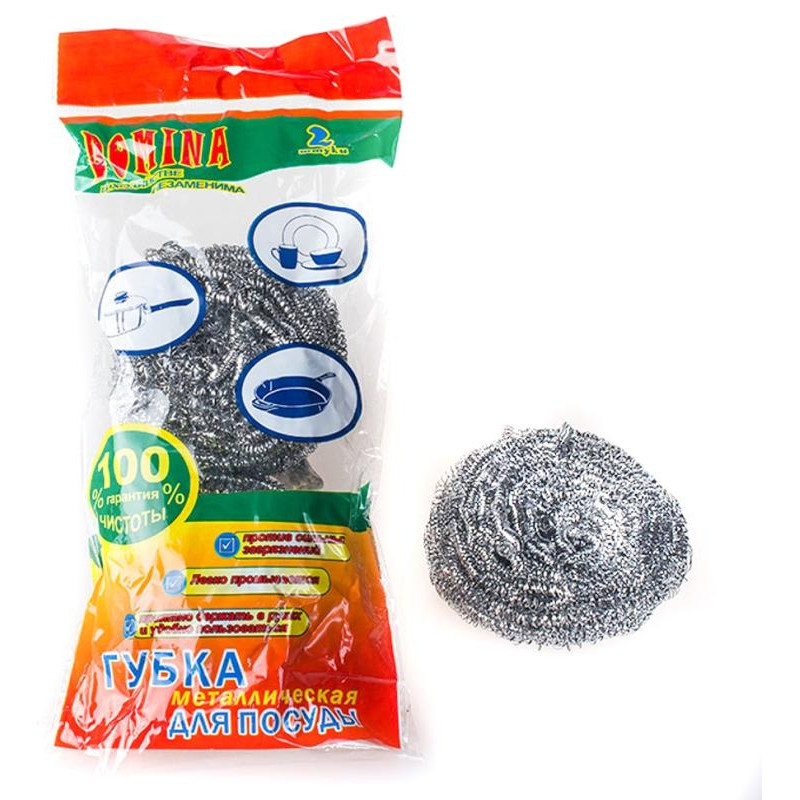 057849 Губка для мытья посуды металл DOMINA (2шт)