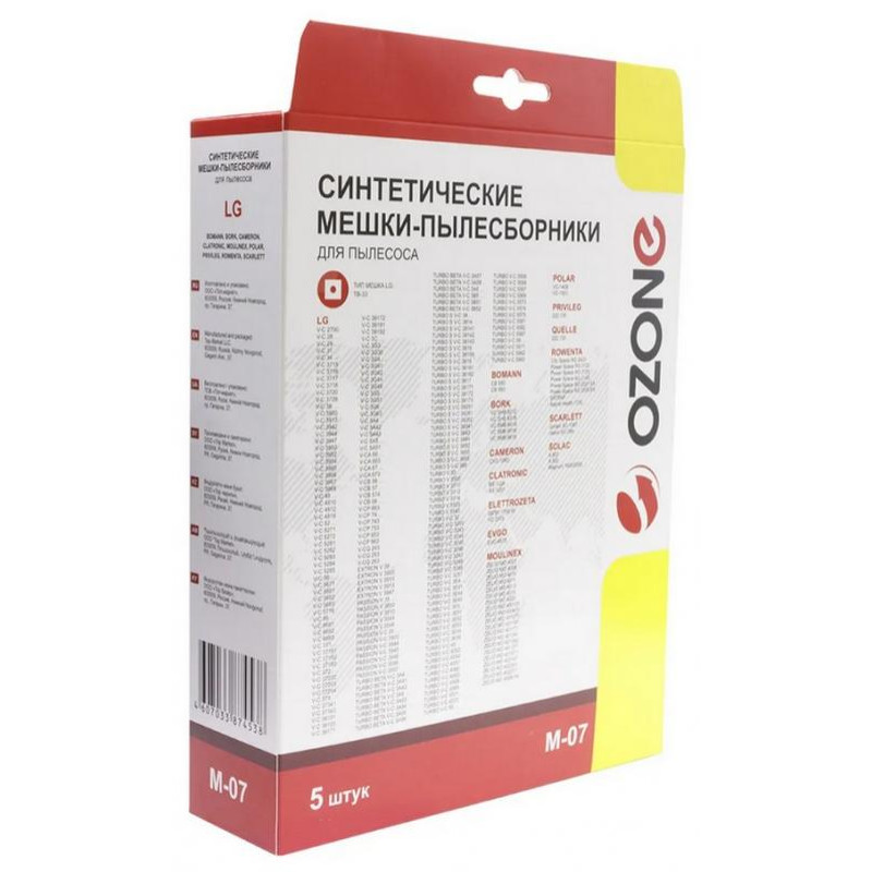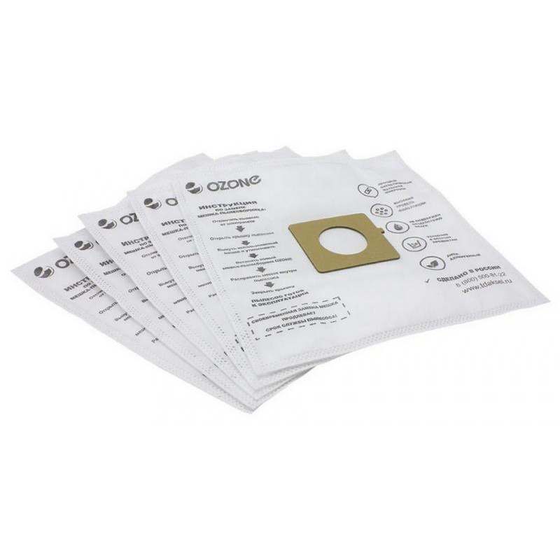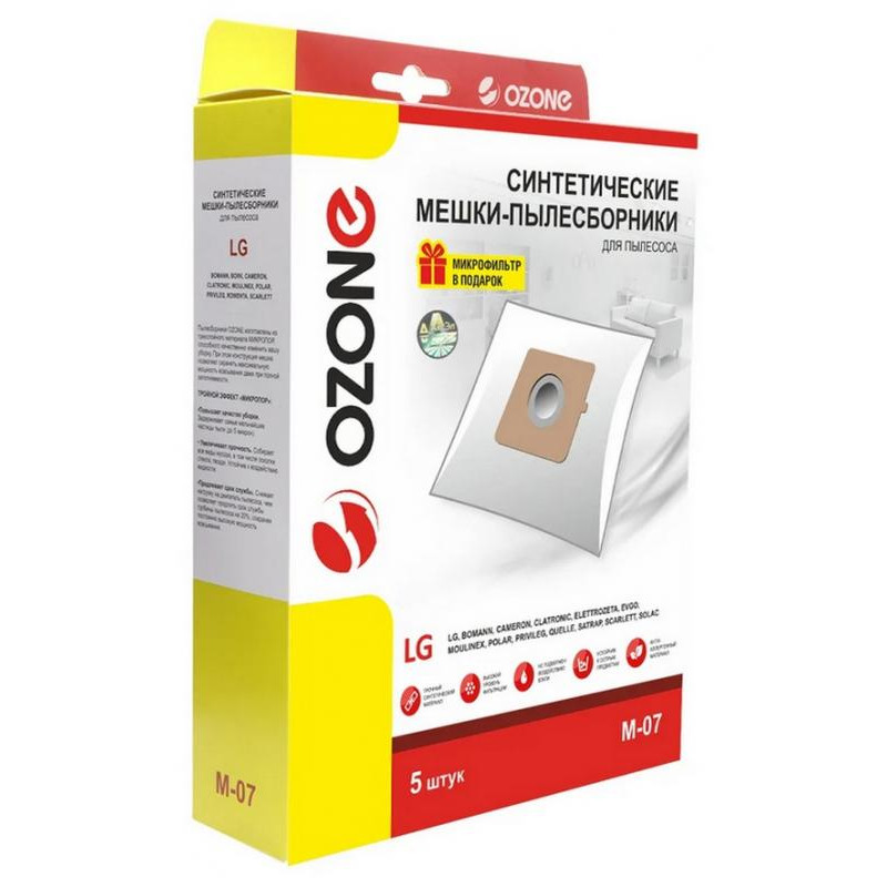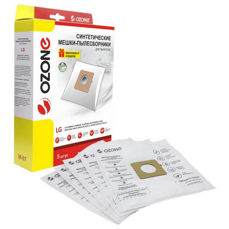 M-07 Мешки-пылесборники Ozone синтетические для пылесоса, 5 шт + микрофильтр