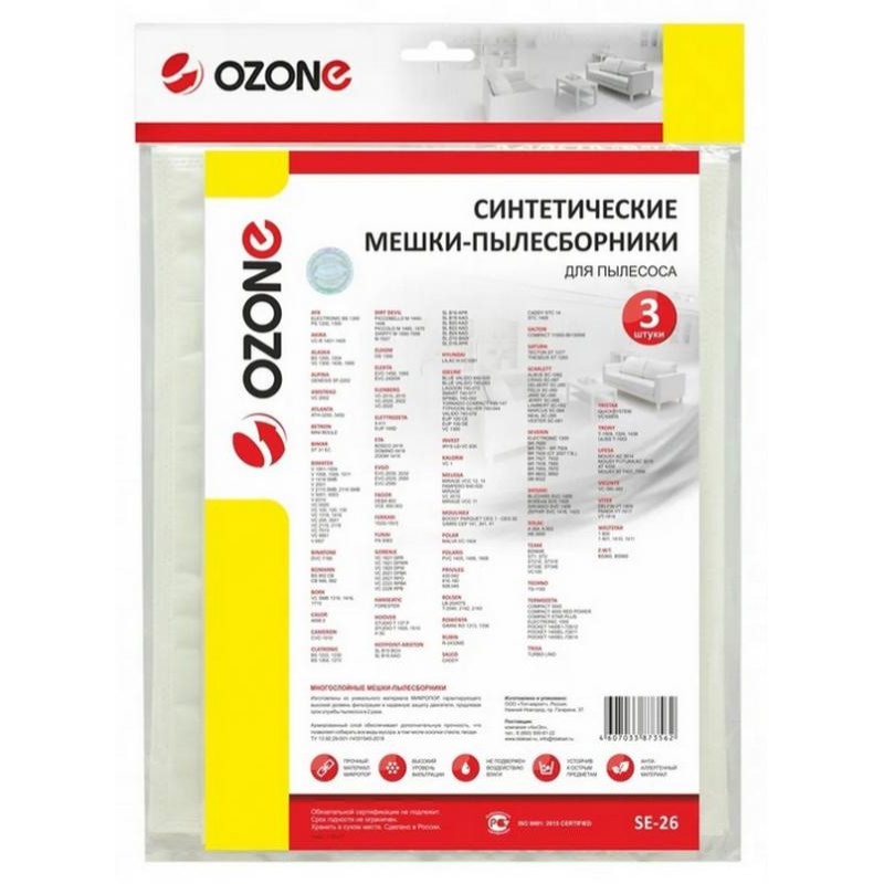SE-26 Мешки-пылесборники Ozone синтетические для пылесоса, 3 шт