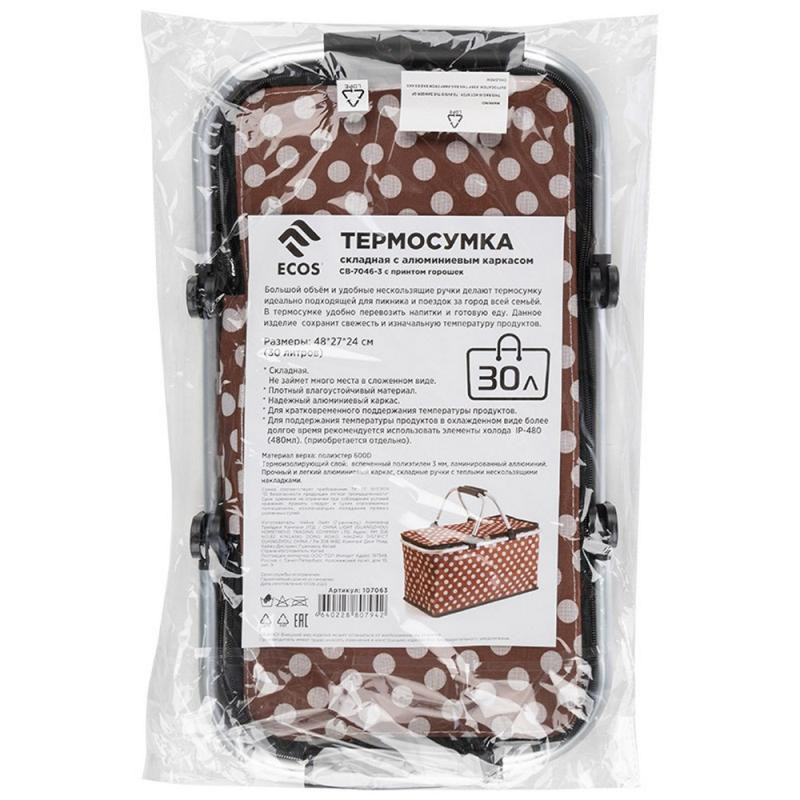 107063 Термосумка складная с алюминиевым каркасом CB-7046-3, с принтом горошек
