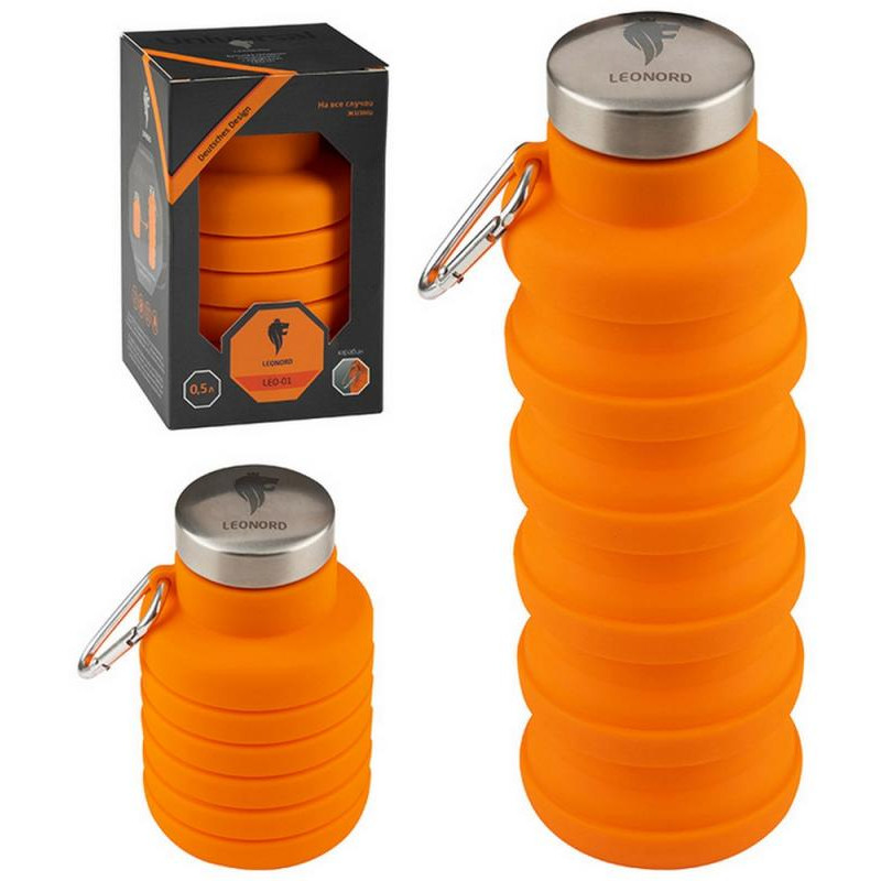 004748 Бутылка складная силиконовая с карабином LEONORD LEO-01